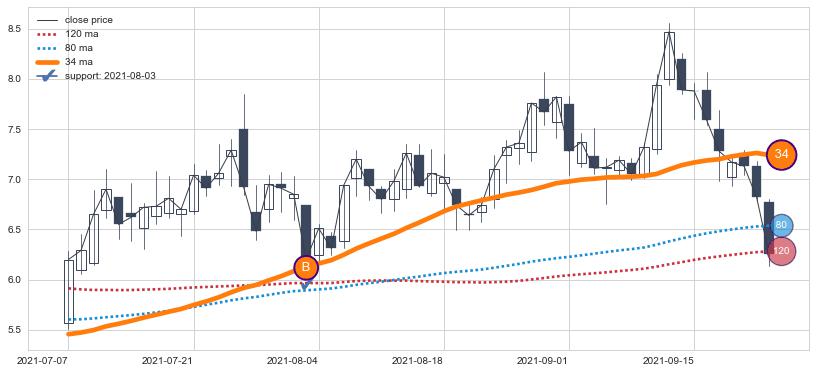 2021-07-07至2021-09-27 慢线与快线呈多头排列, 慢线与快线接触少,无缠绕