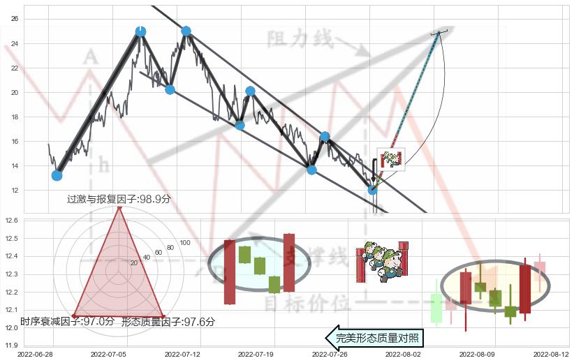 ♘ 阻力价格位17.15,可信任强度94.08%,距离最后交易2022-08-12形成的收盘价格12.37相差 +38.62%