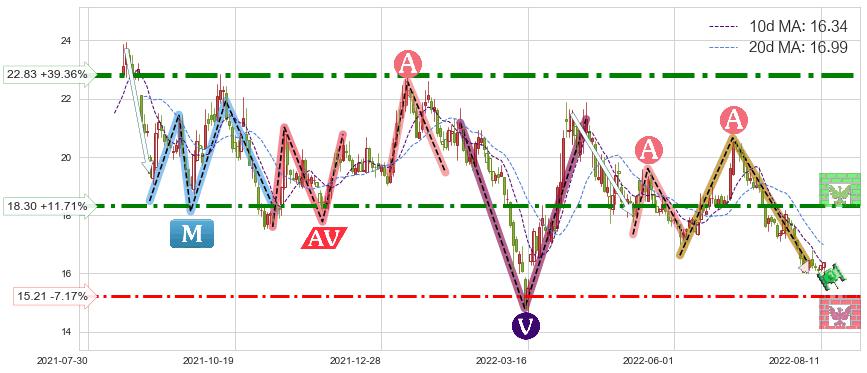 ♘ 阻力价格位18.30,可信任强度80.37%,距离最后交易2022-08-12形成的收盘价格16.38相差 +11.71%