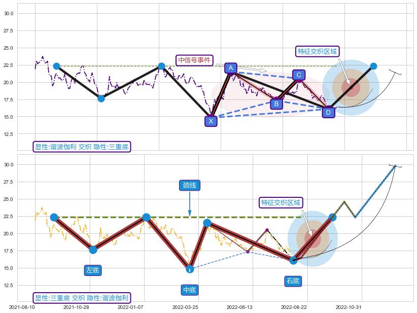 ➢ 谐波伽利属【中级别信号事件】三重底属【长级别信号事件】中长周期组合信号事件,中长事件长度比40.17%