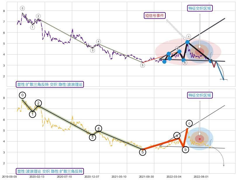 ➣ 扩散三角反转:猜想临近关键支撑位突破点 → 临近拐点下跌 → 风险信号 → 大趋势均值回复
