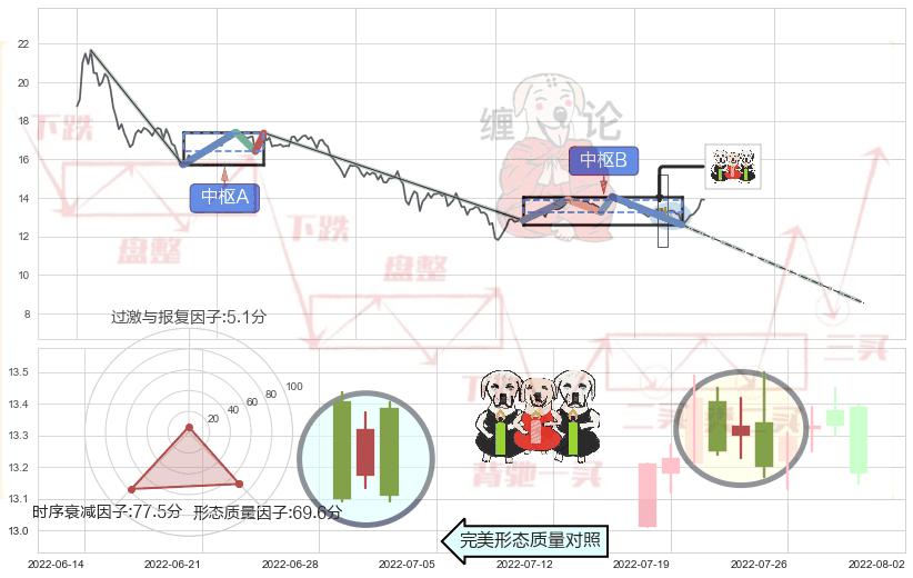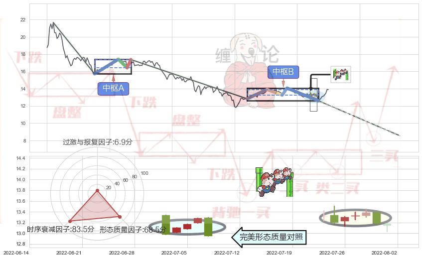 ➣ 下降三部曲(降势三鹤) + 缠论中枢点破位中枢B支撑下拉信号叠加后【目标达成率】中等,【看空】信号叠加【存续影响中等】