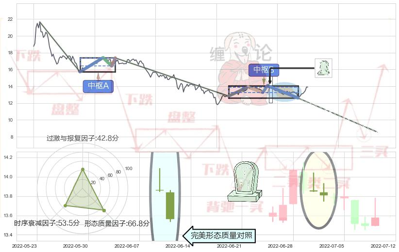 ➢ 下降三部曲(降势三鹤) 🔜 缠论中枢点破位中枢B支撑下拉 综合量化分数:46.64 【中性】