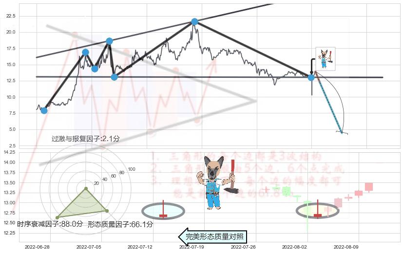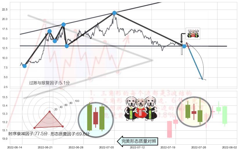 ➢ 【卖1】: 激进型 卖点→(2022-08-02: 13.03 )形成突破【扩散】三角形反转【反转】形态
