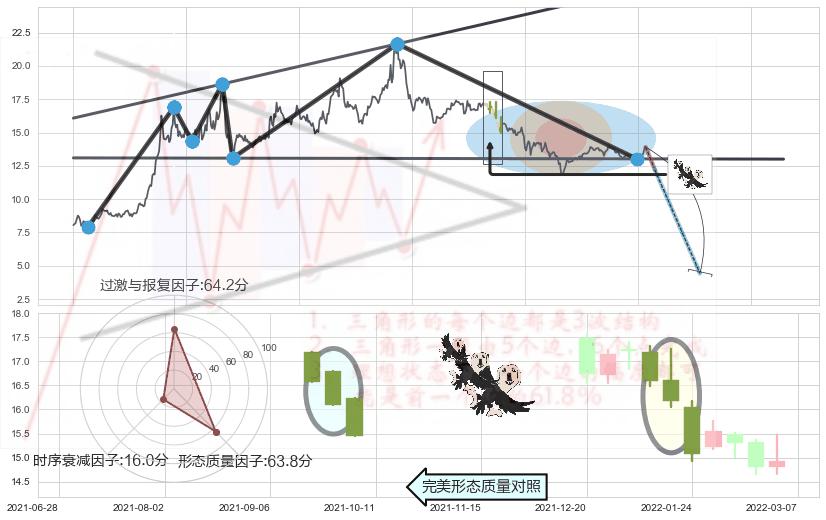 ➢ 扩散三角反转临近支撑猜想转换阻力下跌 🔜 扩散三角反转支撑破位转换阻力下跌 综合量化分数:29.69 【强烈看空】