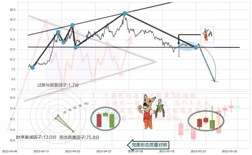 ➢ 下跌镊子线(n形磁铁) 🔜 扩散三角反转支撑破位转换阻力下跌 综合量化分数:45.77 【偏空】