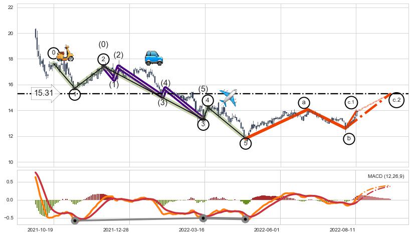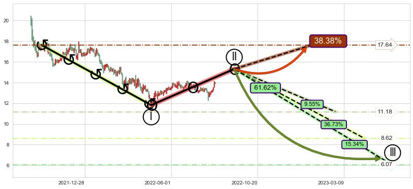 ➣ c.1: 当前c浪回调位置(2022-08-11, 13.92),仍然有回调空间