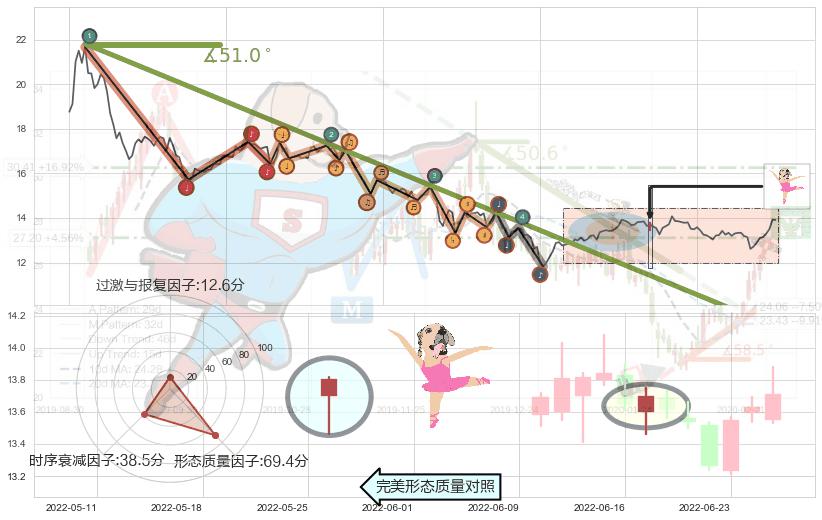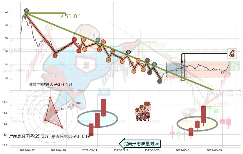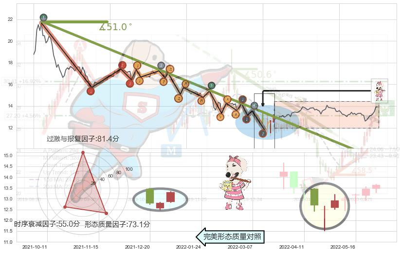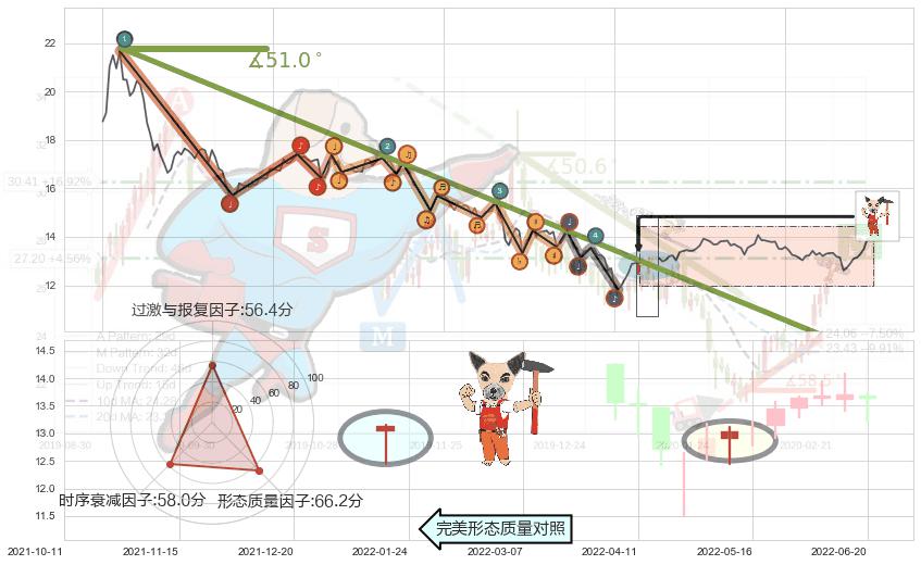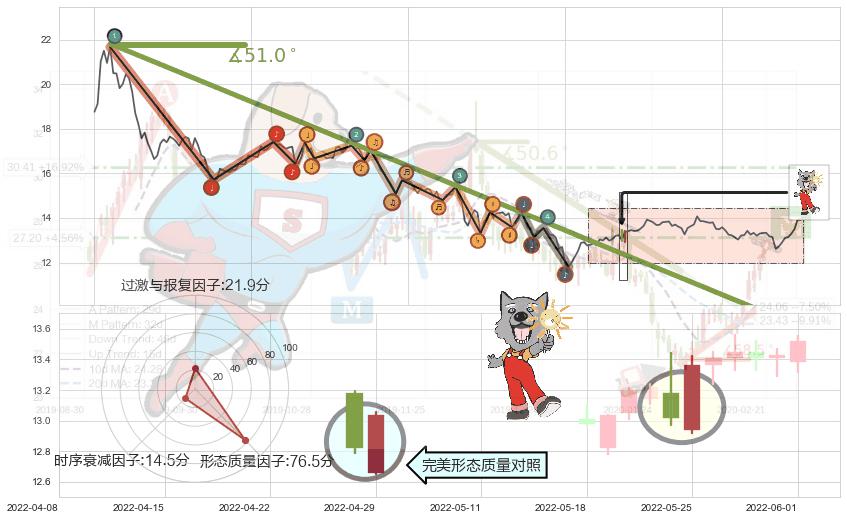 从2021-09-13至2022-05-26,共包含166个交易日,阶段股价下跌-44.77%,阶段股价变动位移路程比: 1 : 5,下跌趋势角度: 51.0