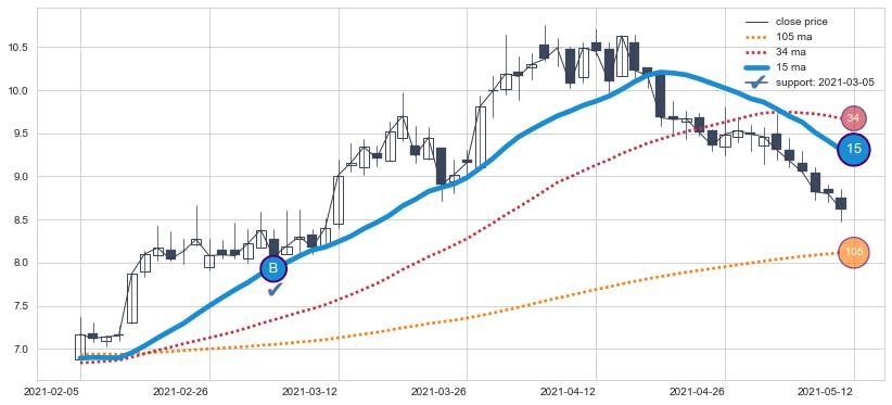 👍 尚未达到多条均线预测的最高波峰价格的平均值, 预期继续上涨