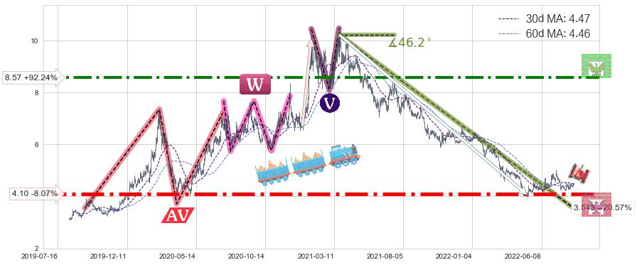 ➣ 【仅预测突破】最后价格:4.46与预测突破价格:4.34→【空间临近】后续最小【整理】第一目标价格→(2022-10-26: 3.180 )