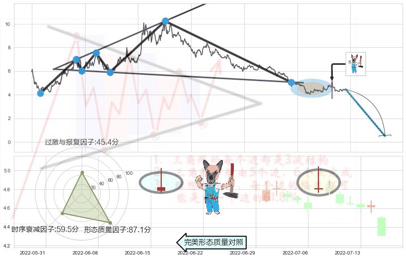 ➢ 下跌螺旋桨 🔜 扩散三角反转支撑破位转换阻力下跌 综合量化分数:45.71 【偏空】