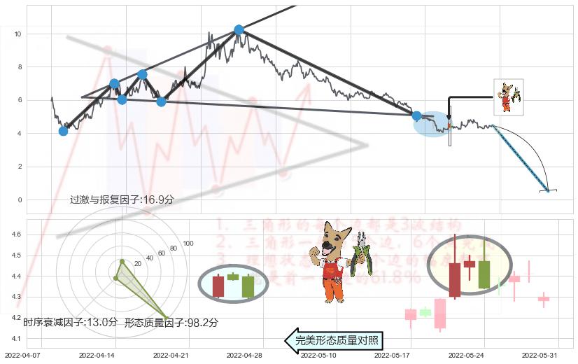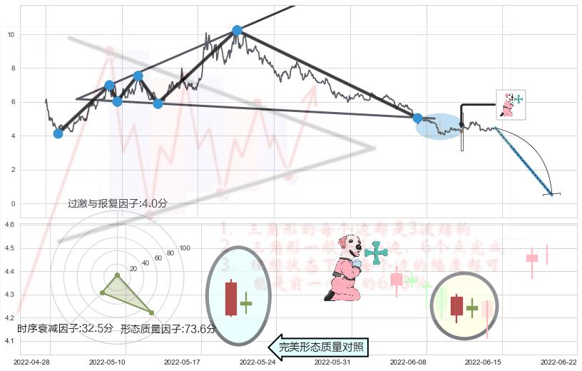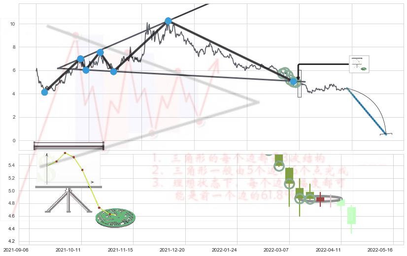➣ 【未确认突破,预测即将形成突破】下降【对称】三角形整理起点:2021-12-13, 预测突破点:2022-08-11,形态共162交易日