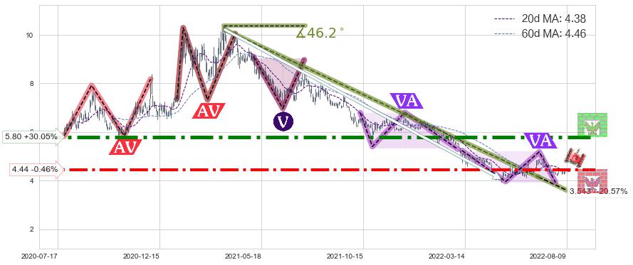 ♘ 阻力价格位5.80,可信任强度93.24%,距离最后交易2022-08-12形成的收盘价格4.46相差 +30.05%