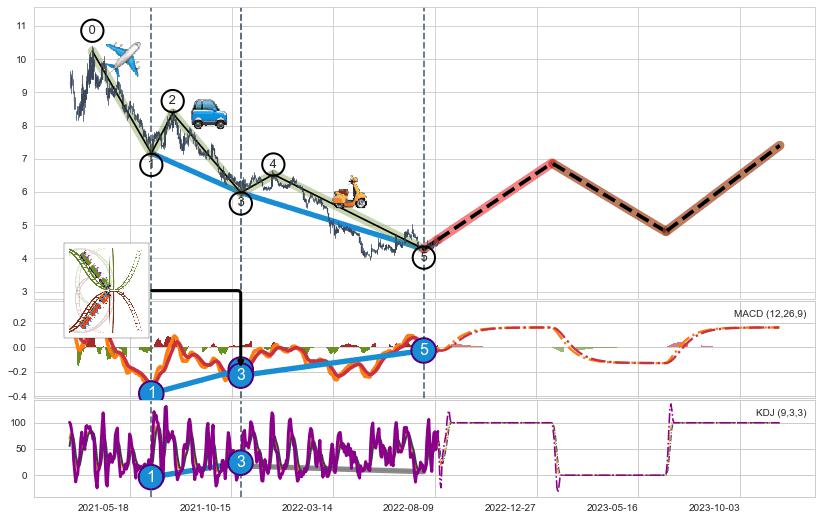 ➣ 波浪理论:猜想止跌 → 上涨 →【拐点】浪5已完成 → 大趋势均值回复