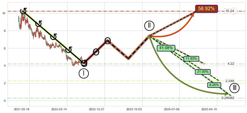 ➣ 循环浪继续向下【平均值】位置(2025-05-01, 2.248),匹配聚类样本比例51.12%, 可能性概率21.00%