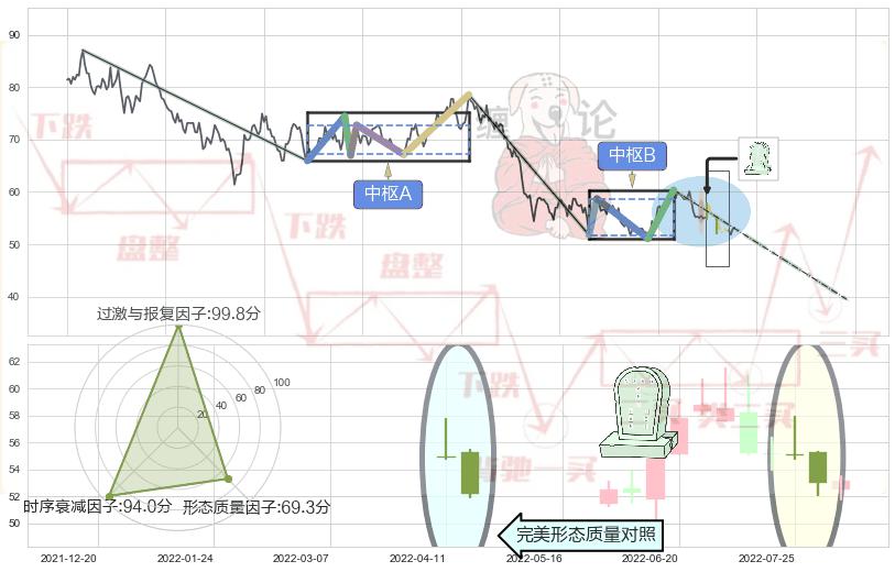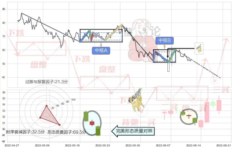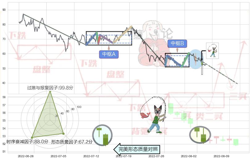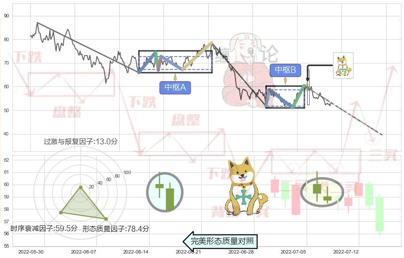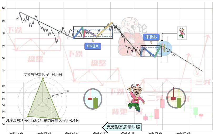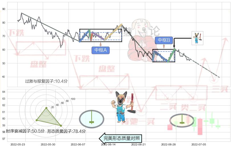 ➢ 下跌孤独十字星 🔜 缠论中枢点破位中枢B支撑下拉 综合量化分数:47.06 【中性】
