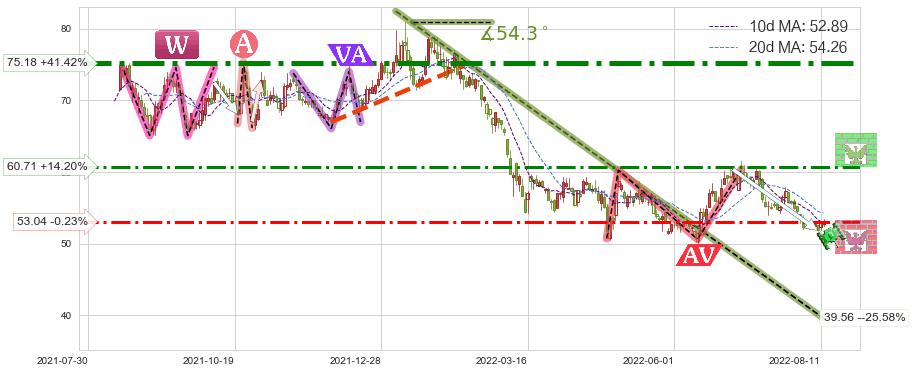 ➢ AI预测: 假定反转如期而至,第❶价格目标位置(2022-08-19, 55.10)