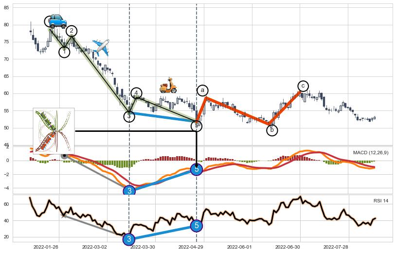 ➣ 波浪理论:猜想达到c点后小反弹终止反转下跌 → 下跌 → 【拐点】临近 → 阶段均值回复结束后继续大周期趋势跟踪