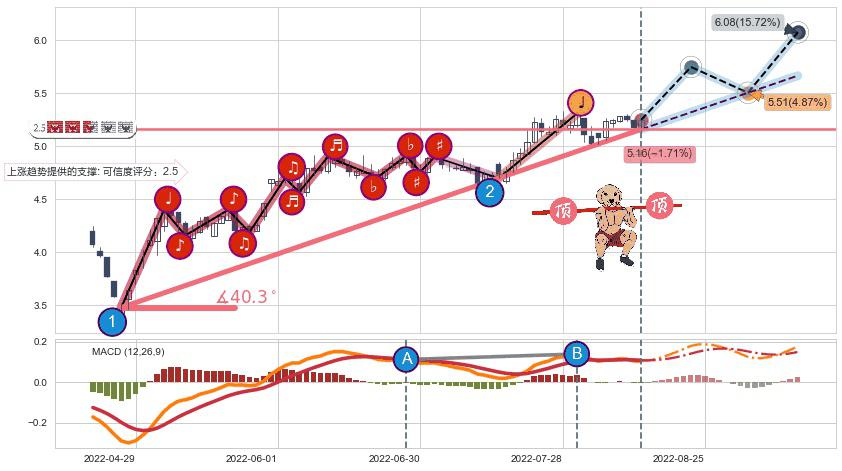 ➣ 预测:2022-09-02,【试探支撑】稳定目前上涨趋势的前提下,预测价格:5.51