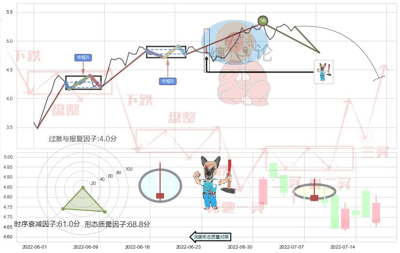 ➣ 【中枢B】:2022-06-15-2022-06-30,中枢由4笔构成,共12交易日, ZG=4.83, ZD=4.76