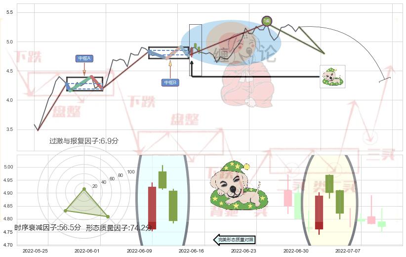 ➢ 🕰 价格走势在2022-07-01至2022-07-05期间形成黄昏之星(夜星),残存影响值:-3.12