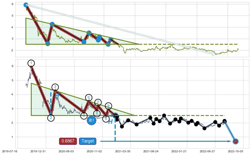 ➢ 【已确认突破】最后价格:2.070与最小【整理】第一目标价格→(2022-10-05: 0.6867 )相较: 下跌空间【中等】
