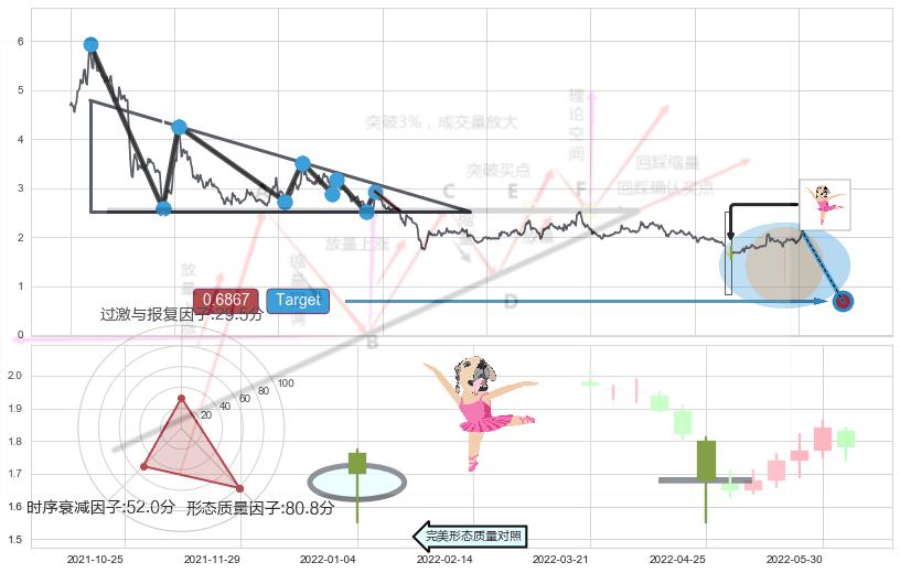 ➢ 看涨(低位)倒锤头线 🔜 下降三角整理临近target支撑拐点上涨 综合量化分数:52.13 【中性】