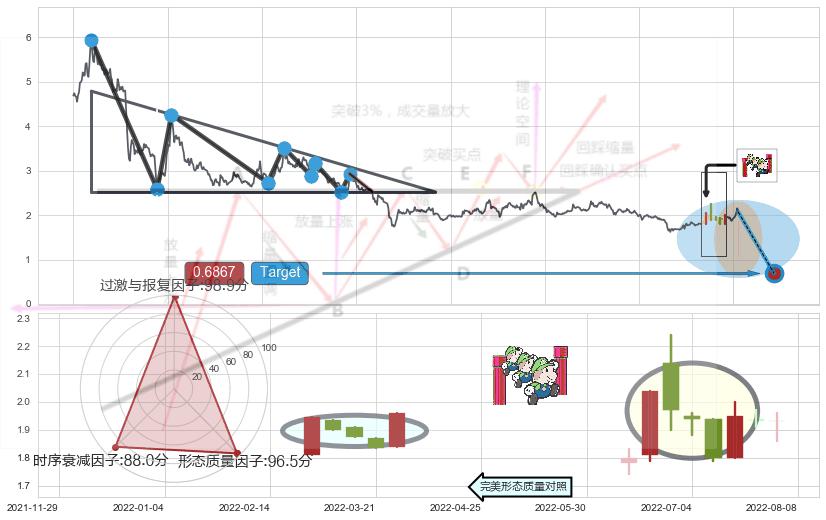 从2019-09-23至2022-08-10,共包含685个交易日,阶段股价下跌-82.17%,阶段股价变动位移路程比: 1 : 15,下跌趋势角度: 45.9
