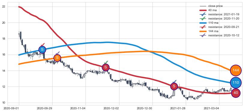 ➣ 历史趋势中共发现9处重要支撑阻力位,其中关键支撑位5处, 关键阻力位4处