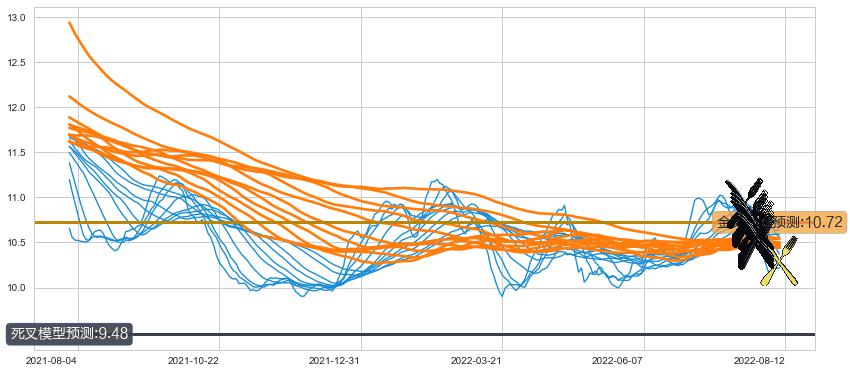 ➣ 120小时均线于(2022-08-01: 10.54)形成【死叉】基于【死叉历史模型】预测死叉后最低波谷价格: 9.46, 死叉后最低价格10.07,尚未达到预测最低波谷价格, 预期继续下跌