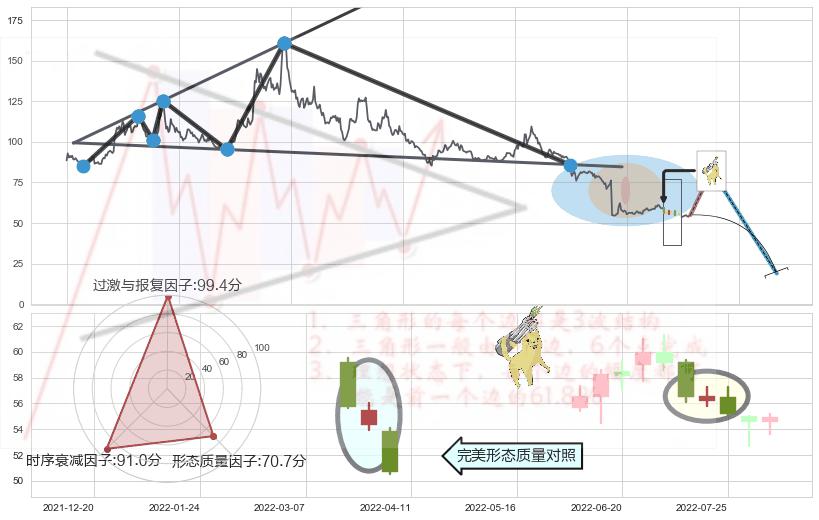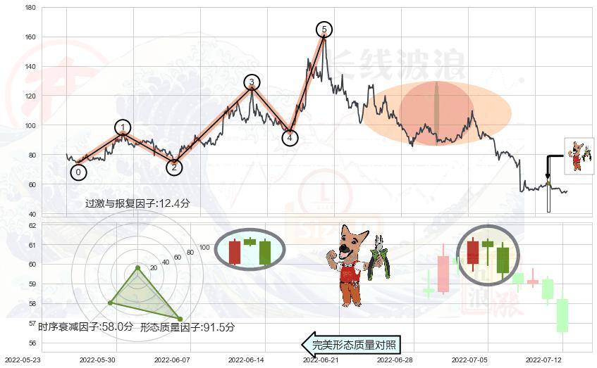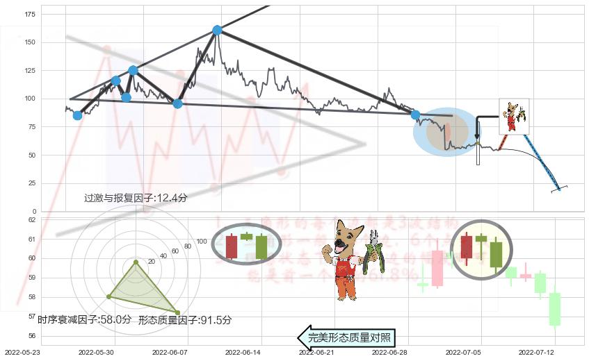 ➢ 🕰 价格走势在2022-07-25至2022-07-26期间形成顶部尽头线(下山虎),残存影响值:-5.00