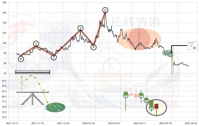 ➢ 收盘价(2022-05-16: 62.22 )→回踩→第二根k线高点(2022-05-05: 55.21 )