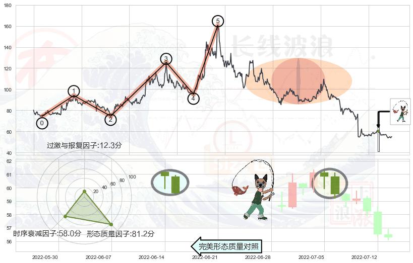 ➢ 下跌镊子线(n形磁铁) 🔜 波浪理论上涨浪:浪5回调拐点 综合量化分数:47.58 【中性】