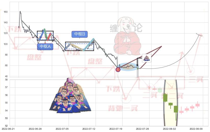 ➣ 缠论买卖点:下降缠中枢AB形成后猜想拐点1买已到达,猜想后续持续拉升(均值回复)