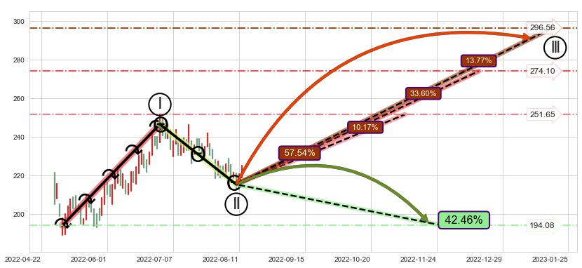 ♘ 支撑价格位198.85,可信任强度75.01%,距离最后交易2022-08-12形成的收盘价格224.90相差 -11.58%