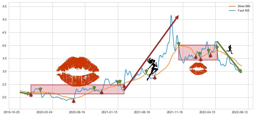 2021-10-28至2022-04-22 慢线与快线多次接触,存在上下穿越,有缠绕