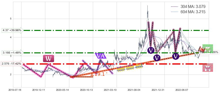 ♘ 阻力价格位3.166,可信任强度75.84%,距离最后交易2022-08-12形成的收盘价格3.120相差 +1.48%