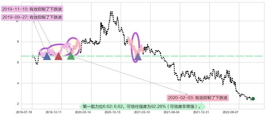 ♞ 第一阻力位6.62价格为6.62,其通过量化计算出的可信任强度为92.28%(可信度非常强)。