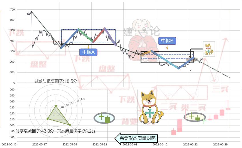 ➢ 下跌孤独十字星 🔜 缠论中枢点破位中枢B支撑下拉 综合量化分数:47.07 【中性】