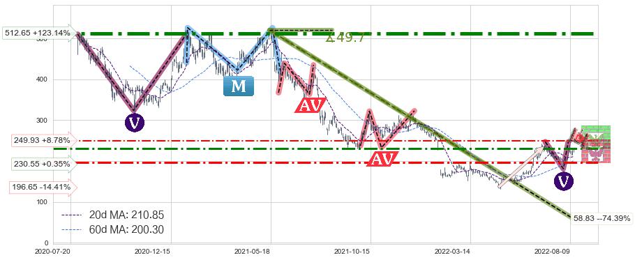 ♘ 阻力价格位230.55,可信任强度63.24%,距离最后交易2022-08-12形成的收盘价格229.75相差 +0.35%