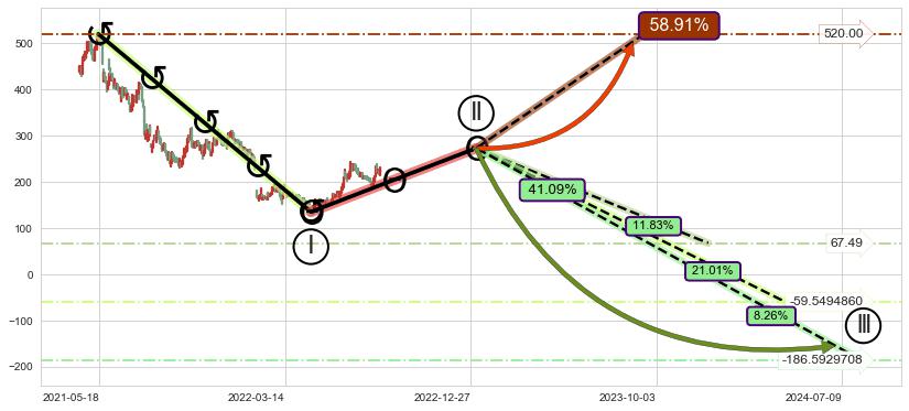 ➣ 大趋势循环浪继续向下概率41.09%