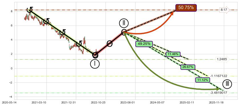 ➣ 大趋势循环浪继续向下概率49.25%