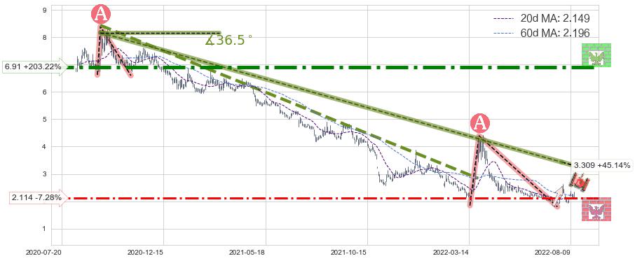 ♘ 阻力价格位6.91,可信任强度94.22%,距离最后交易2022-08-12形成的收盘价格2.280相差 +203.22%
