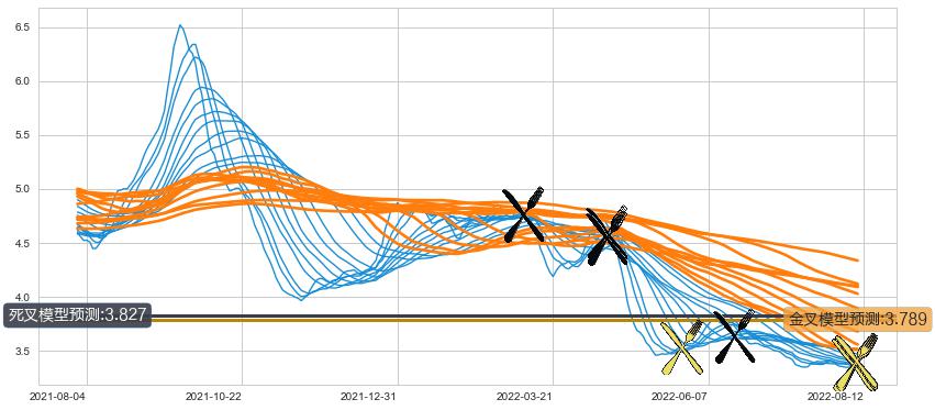 ➣ 90小时均线于(2022-04-15: 4.58)形成【死叉】基于【死叉历史模型】预测死叉后最低波谷价格: 3.981, 死叉后最低价格3.230,已经下跌超出预测最低波谷价格, 预期反弹