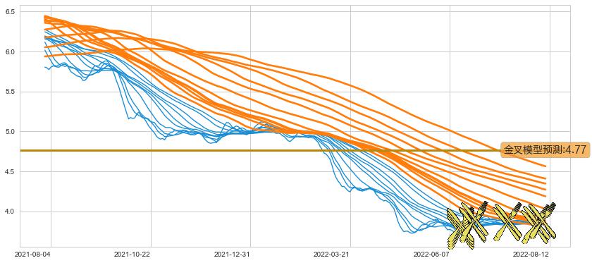 ➣ 80小时均线于(2022-08-05: 3.861)形成【金叉】基于【金叉历史模型】预测金叉后最高波峰价格: 4.96, 金叉后最高价格3.950,尚未达到预测最高波峰价格, 预期继续上涨