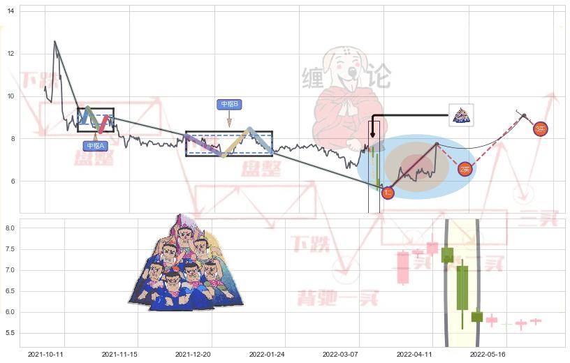 ➣ 【中枢B】:2021-05-28-2021-10-28,中枢由4笔构成,共102交易日, ZG=8.14, ZD=7.34