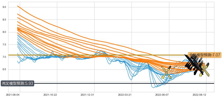 ➢ 55小时均线于(2022-08-01: 6.59)形成【死叉】基于【死叉历史模型】预测死叉后最低波谷价格: 5.82, 死叉后最低价格6.26,尚未达到预测最低波谷价格, 预期继续下跌