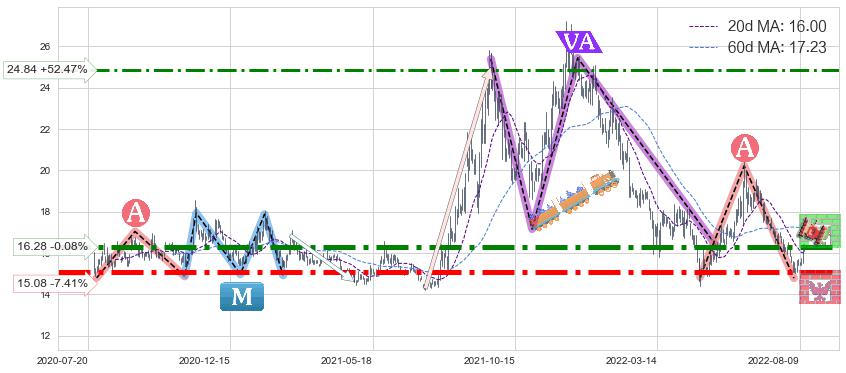 ➣ 【已确认突破】最后价格:16.29与最小【反转】第一目标价格→(2022-09-09: 11.74 )相较: 下跌空间【中等】