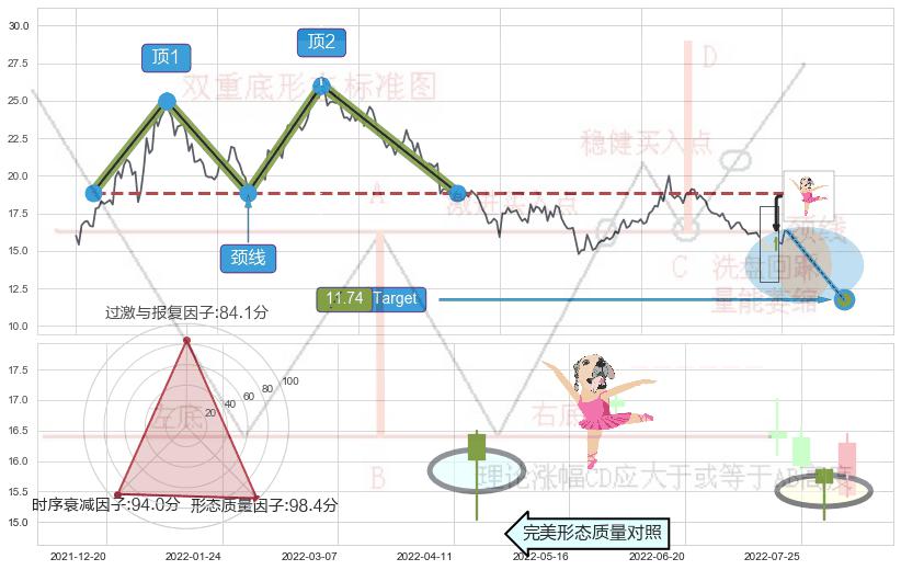 ➢ 仙人指路 🔜 双重顶临近target支撑拐点上涨 综合量化分数:53.15 【中性】