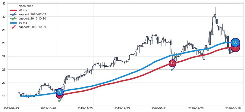 ➢ 最优均线组合共正确确认支撑阻力信号7处,正确确认率 70.00%
